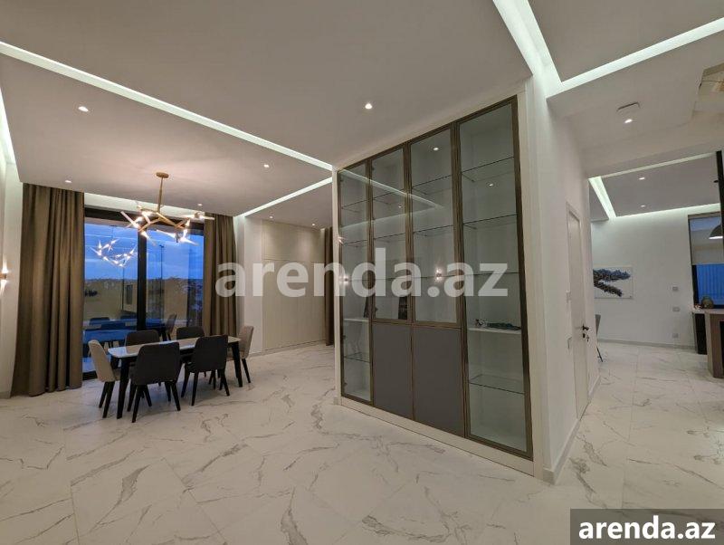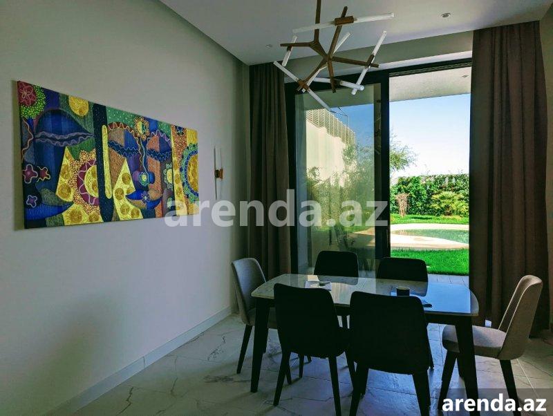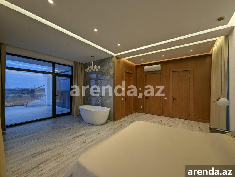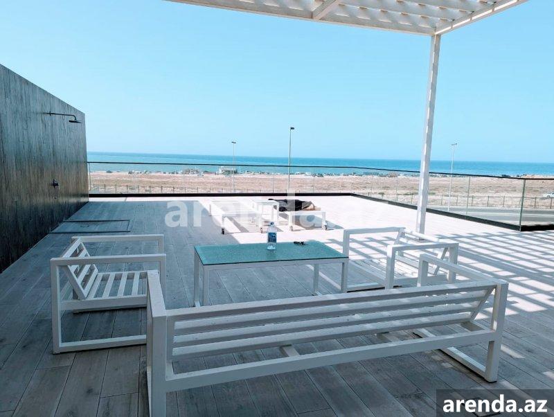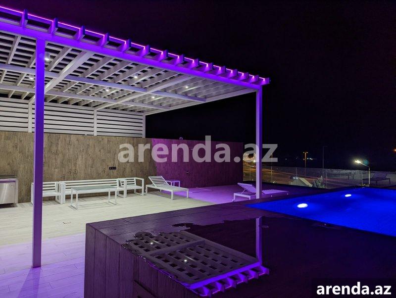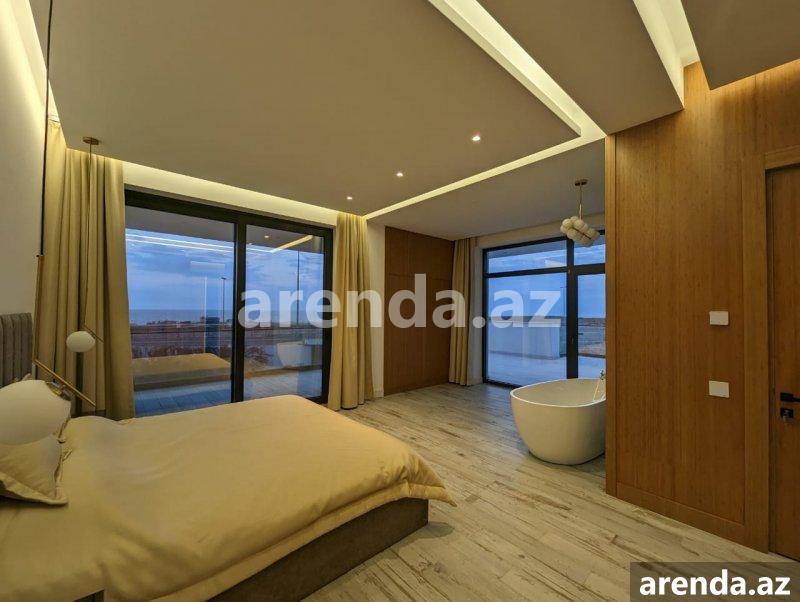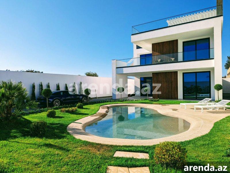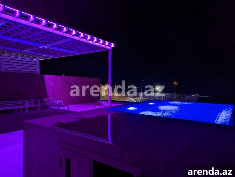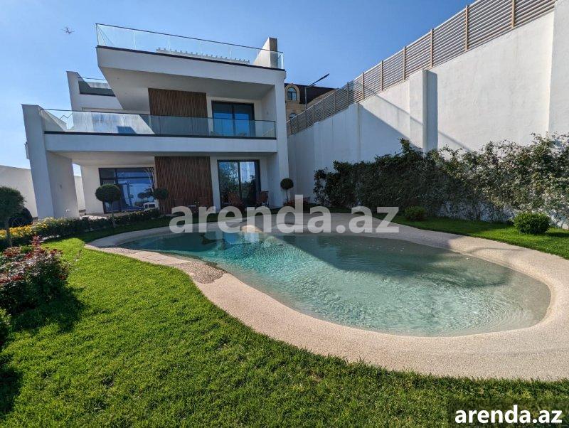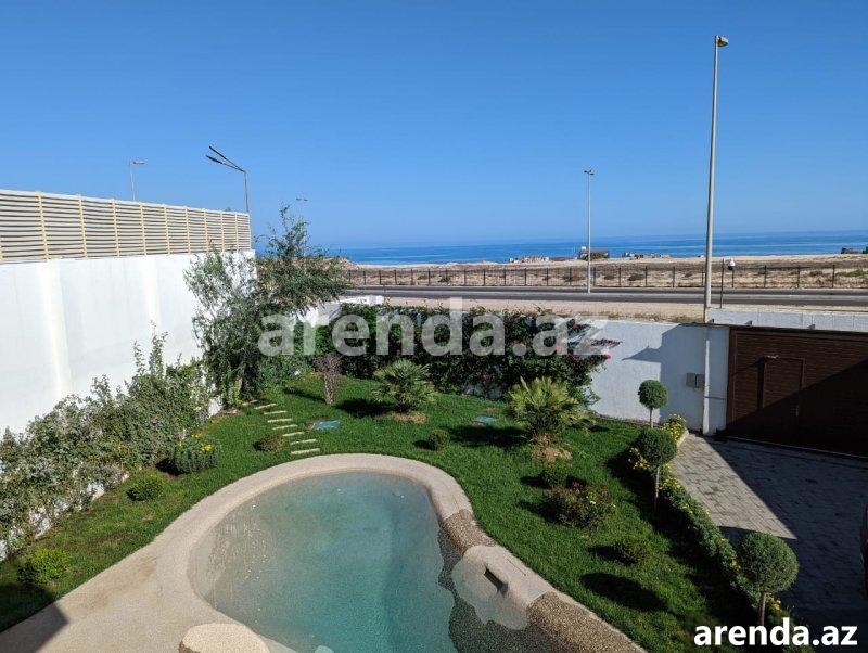 Müasir üslubda tikilmiş, SEA BREEZE çimərliyi ilə üz bə üz və dənizə 200 metr məsafədə yerləşən villa icarəyə verilir. Evdə, bütün mövsüm boyu luks yaşamaq üçün hər bir rahatçılıq nəzərə alınıb. Böyük qonaq otağı, istirahət zonası,mətbəxdə hər cür muasir avadanlıq, professional kofe maşını, 2 yataq otağı (dəniz mənzərəli), geniş və işıqlı iş otağı, 3 cü mərtəbədə açıq dəniz mənzərəli teras, terasda jakuzi və hovuz , yay mətbəxi və barbekyu zonası. Həyətdə, Azərbaycanda ilk dəfə təbii dəniz qumu ilə inşa edilmiş Biodesign İtalyan hovuzu (Xlor və kimyəvi maddələrdən istifadə olunmur). Ev ağıllı ev sistemləri ilə təchiz olunmuşdur və bütün avadanlıqlar uzaqdan mobil telefonla idarə oluna bilir. Evin muhafizə, bağban, həyətə və hovuza xidmət edən personalı var. Whats app vasitəsi ilə əlaqə saxlamağınız xahiş olunur Yanvar, Fevral, Mart, Aprel, Oktyabr, Noyabr, Dekabr ayları üçün aylıq 5000 AZN May və Sentyabr ayları üçün 8000AZN İyun, Iyul və Avqust ayları üçün isə 15000 AZN A villa built in a modern style, in front Sea Breeze beach and 200 meters from the sea, is available for rent. At home, every comfort has been considered for luxurious living all season long. Large living room, relaxation area, all modern equipment in the kitchen, professional coffee machine, 2 bedrooms (with sea view), spacious and bright study room, terrace with open sea view on the 3rd floor, jacuzzi and swimming pool on the terrace, summer kitchen and barbecue area. In the yard, for the first time in Azerbaijan, there is a Biodesign Italian swimming pool built with natural sea sand (chlorine and chemicals are not used). The house is equipped with smart home systems and all equipment can be controlled remotely by mobile phone. The house has security, gardener, yard and pool service staff. Please contact via Whats app 5000 AZN per month for January, February, March, April, October, November, December 8000 AZN for May and September