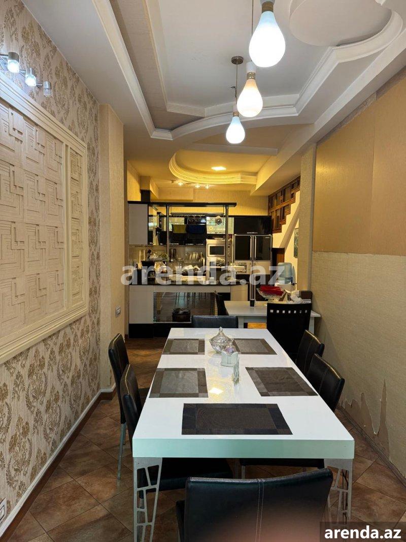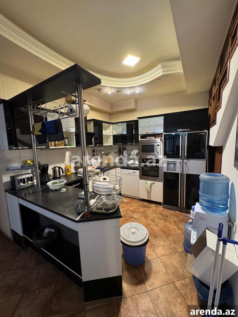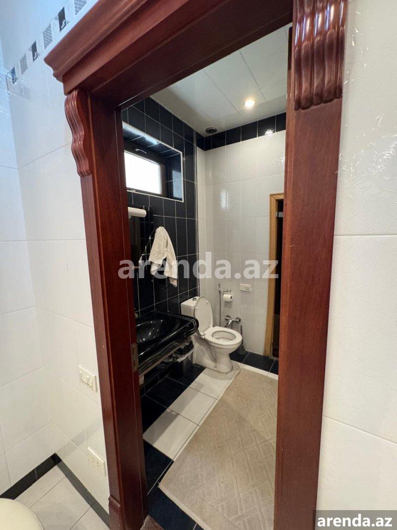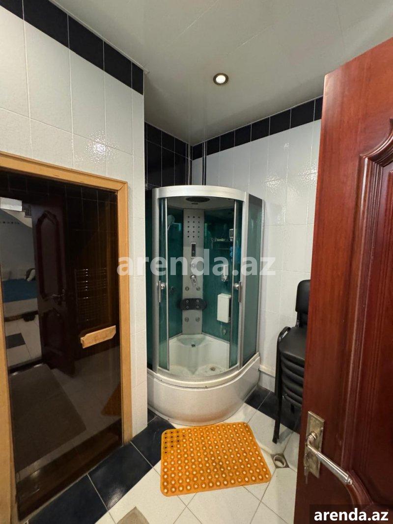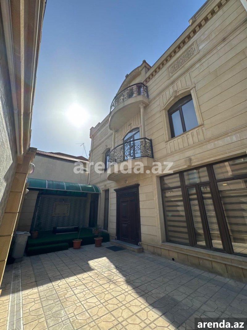 Рядом с м/с Генжлик, рядом с домом торжеств Крал, улица С. Рахмана, сдаётся 3 – х этажная, монолитная, покрытая аглаем частная собственность общей площадью 565 кв м построенная на 4 сот. Супер ремонт, полы паркет, высота потолков 4 метра, балкон на каждом этаже, газ, вода, свет круглосуточная, система отопления комби. 1-й этаж: просторный холл, кухня, встроенная кухонная мебель, сауна, бассейн. 2-й этаж: 4 спальни, холл, ванная комната в каждой комнате. 3-й этаж: большая гостиная. Во дворе парковочное место, с/у, фонтан и бассейн (в настоящее время временно закрыт легкой конструкцией). Все документы в порядке.