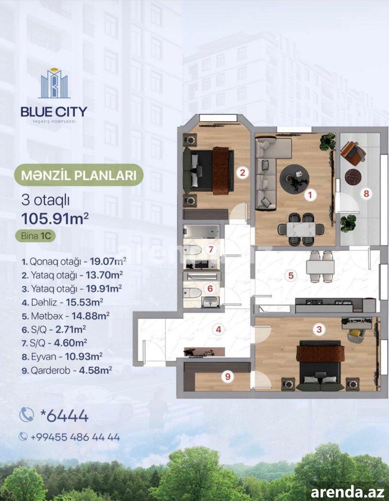 3 комнатная 94 m² 15/16 этаж -