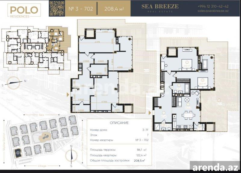 3 комнатная 180 m² 11/17 этаж -
