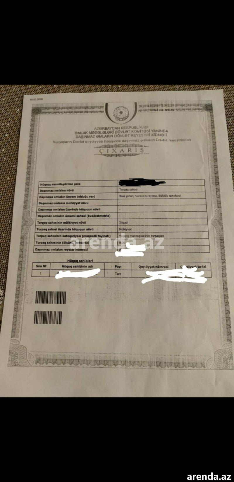 Продажа Участок, пос. Бюльбуля, Сураханы район