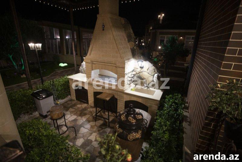 Baki sheheri Abseron r-nu , Goredil qesebesinde , Umumi sahesi 679.9 m2 (714.1 m2 eyvanla) olan ev ve 323,1 m2 elave tikililer 17.305 sot ( eslinde 18.125 sot ) erazinde yerleshir. Dashinmaz emlakin ve torpag sahesinin senedleri - cixarish , texniki passport. Ev qayanin ustunde yerleshir, denize gozel panorama acilir. Cimerliye pisaya 8-10 deq yoldur. Evin fassadi ve hasarlari (h-4 metr) temamile "aglay" dash ve klinker uzlu kerpicle (CERRAD , Polsha) elece de sutunlarla , memarliq mehsullari ile ishlenmishdir. Dam ortuyu - 0,5 mm qalinligi olan metal lovhe ( Dongbu Steel , Cenubi Koreya ).Evin icerisinde ve xaricinde olan eyvanlar, terraslar ve pilekenler aluminium meheccerle hesarlanib. Evin etrafinda ve heyetinde drenaj sistemi qurulub, Evin xarici divarlarinin qalinligi 500 mm , zirzemi qatinin ise 800 mm. Ev ferdi layiheye esasen tikilib. Yuksek keyfiyyetli dushunulmush tikinti, funksional planlashdirma, dekorativ elementleri olan bahali daxili bezek, butun detallar xususi olarag bu ev ucun hazirlanmishdir. Istilik sistemi ve yerden isitme agilli ev prinsipi ile idare olunur. Ev keyfiyyetli mebel, muasir texnika, bahali qablar ve aksesuarlarla tam techiz olunmushdur. Erazinin butun perimetri boyunca regemsal kabel TV, telefon (mini ATS) , Internet (Wi-Fi), ve video nezaret sistemi qurashdirilib. Ev 4 mertebeden ibaretdir: Zirzemi mertebesi - saheye cixishi olan texniki ota , xoll, saxlama otai , istirahet ucun bar otai, idmanm zali, istirahet otagi olan sauna, texniki otag, temizlik avadanligi otagi. Birinci mertebe - on girish , xoll garderob ile, metbex, yemek otagi, kamin ile qonaq otagi, kabinet, s/q , saheye cixishi olan camashirxana, hovuz- soyunma ve dush otagi ile, terasa cixishi var. Ikinci mertebe - xoll, verandaya cixish , s/q, ushag yatag otagi , yatag otagi, qonaq otagi ,s/q ve garderob olan otagi, eyvan. Mansard mertebesi - xoll, s/q , mini metbex, balkon, yatag otagi, qonaq yatag otagi. Erazide avtomatik suvarma sistemi, landshaftyashillashdirma , sahenin perimetri boyunca ishiqlandirma ve dekorativ ishqlandirma qurashdirilib. Agaclar boyunca gezinti ucun zolaqlar qoyulub. LED fevvare ve selalesi olan suni golmeche. Baliq saxlamag ucun avadanliglarla tehciz olunmush mini hovuz. Qizdirilan qish bagi dekorativ bitkilerle. Terevez yetishdirmek ucun qizdirilan istixana. Bag aletleri ucun ortulu saxlama yeri. Qazanxana. Cardaqli ve veranda ile ferdi ev, yashamag ucun lazim olan her sheyle techuz olunub. Tezyiqli yuyucu qurgu ile techiz olunmush 2 avtomobil ucun ortuklu dayanacag. Sahede istirahet etmek ucun metbex, tualet ve dush otaqlari ile, mebel , maishet texnikasi, qab-qacag, aksesuarlar ve barbeku- mangalla tam techiz olunmush panorama pencereleri ve terrasi olan bir baxca koshku var. Zirzemisinde emalatxana ve cardaqla saxlama otagi var. Qarshisinda ortuklu sahede qedimi samovar , qarashdirilmish kerpichden mangal ve al ishi olan tendir yerleshir. Hemchinin xosh vaxt kecirmek ucun oyun sahesi olan qapali bir koshk ( panor