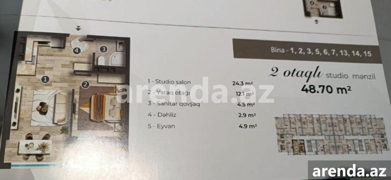 2 otaqlı 51 m² 3/16 mərtəbə -