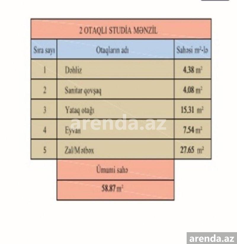 2 otaqlı 58 m² 4/15 mərtəbə -