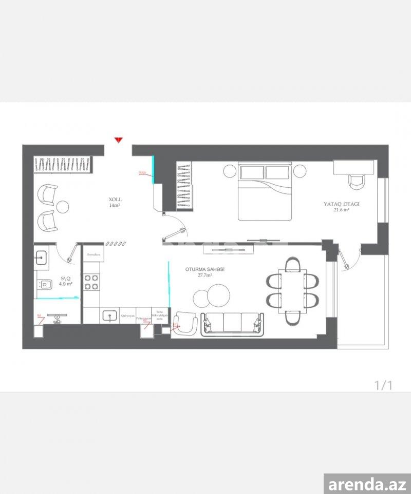 1 otaqlı 66 m² 4/15 mərtəbə -