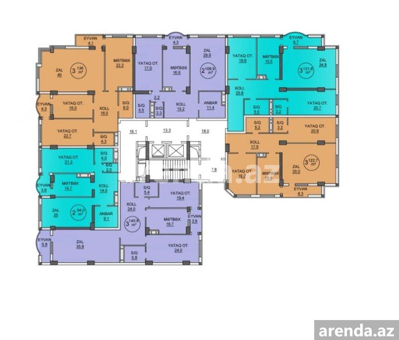 3 otaqlı 126 m² 8/17 mərtəbə -