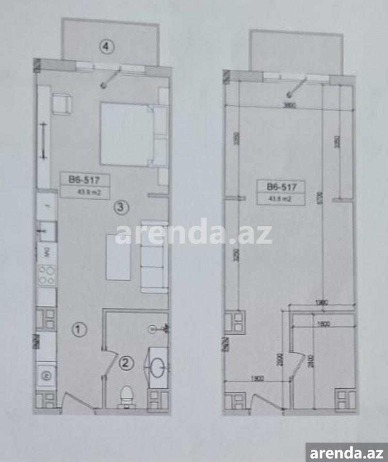 1 otaqlı 42 m² 2/5 mərtəbə -