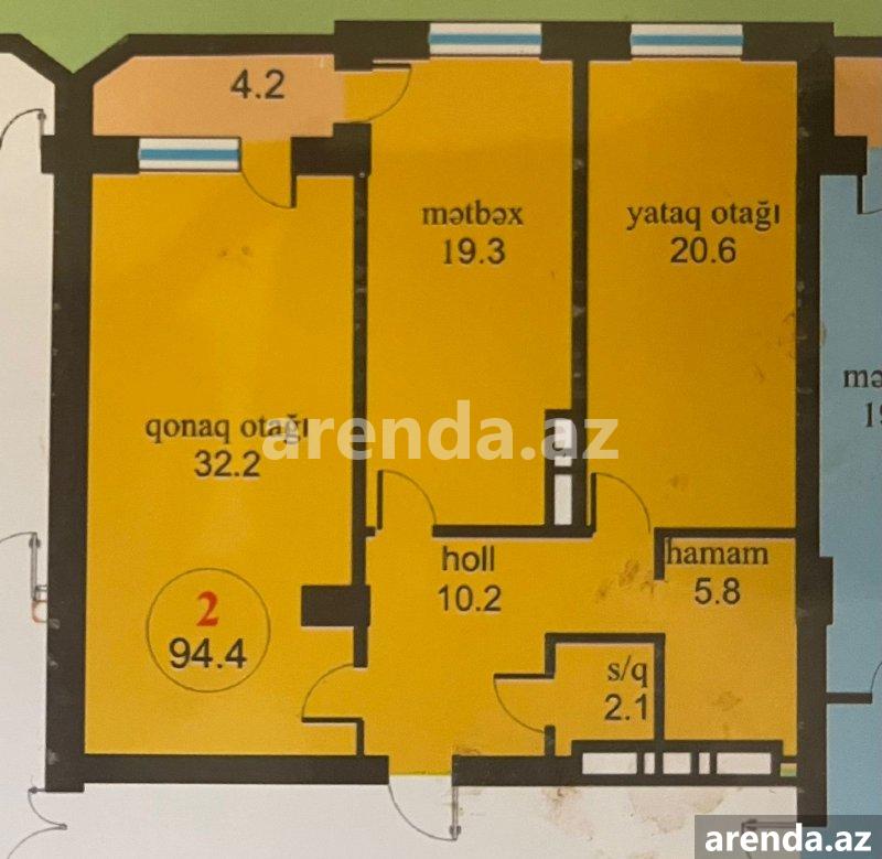 3 otaqlı 96.2 m² 6/16 mərtəbə -