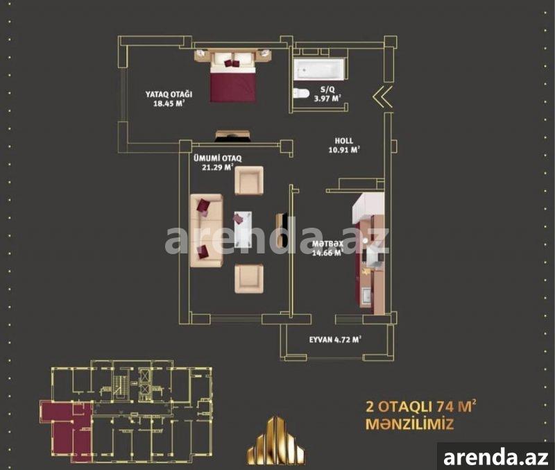 2 otaqlı 75 m² 12/18 mərtəbə -