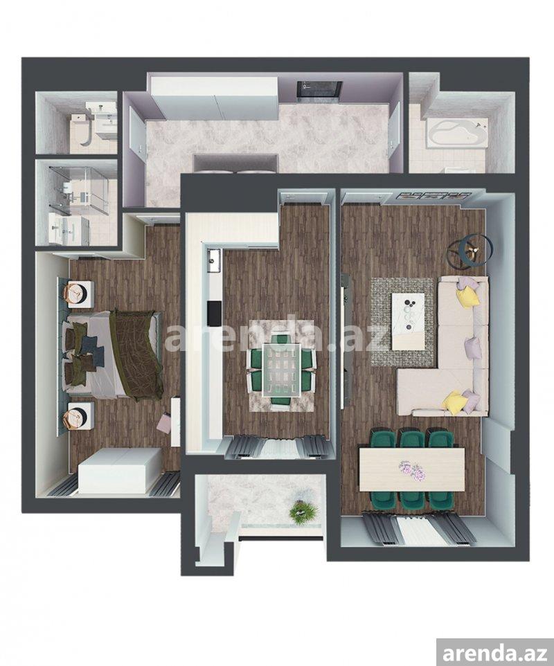 2 otaqlı 57 m² 1/1 mərtəbə -