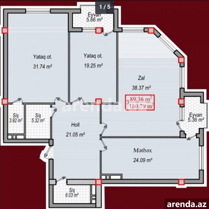 4 otaqlı 235 m² 6/20 mərtəbə -