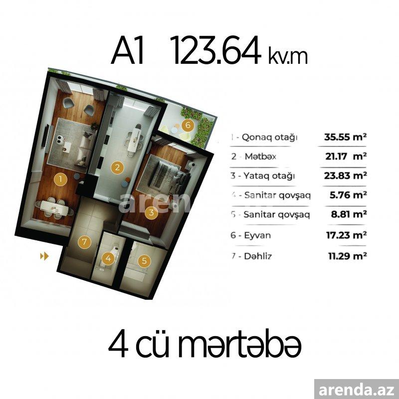 GreenVille Yaşayış Kompleksində Geniş və Rahat Mənzil Satılır! Bakı şəhəri, prestijli GreenVille Residence kompleksi — A1 binasının 4-cü mərtəbəsi Yüksək keyfiyyətli tikinti, ideal planlaşdırma və böyük sahə ilə seçilən mənzil! Binada tikinti işləri sürətlə yekunlaşır Mənzil təmirinə start vermək olar. Ümumi sahə: 123.64 kv.m 2 geniş otaq + 1 mətbəx + 2 sanitar qovşaq + 1 böyük eyvan Mənzili 3otaq studio çox rahat etmək mümkündür. Planlaşdırma: - Qonaq otağı – 35.55 kv.m - Mətbəx – 21.17 kv.m - Yataq otağı – 23.83 kv.m - Sanitar qovşaq 1 – 5.76 kv.m - Sanitar qovşaq 2 – 8.81 kv.m - Eyvan – 17.23 kv.m - Dəhliz – 11.29 kv.m