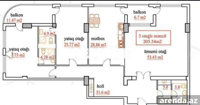 3 otaqlı 86 m² 5/6 mərtəbə -