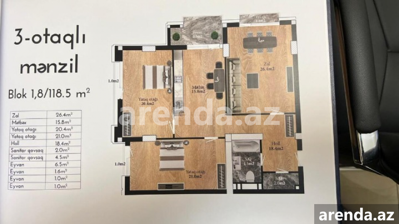 3 otaqlı 130 m² 6/8 mərtəbə -
