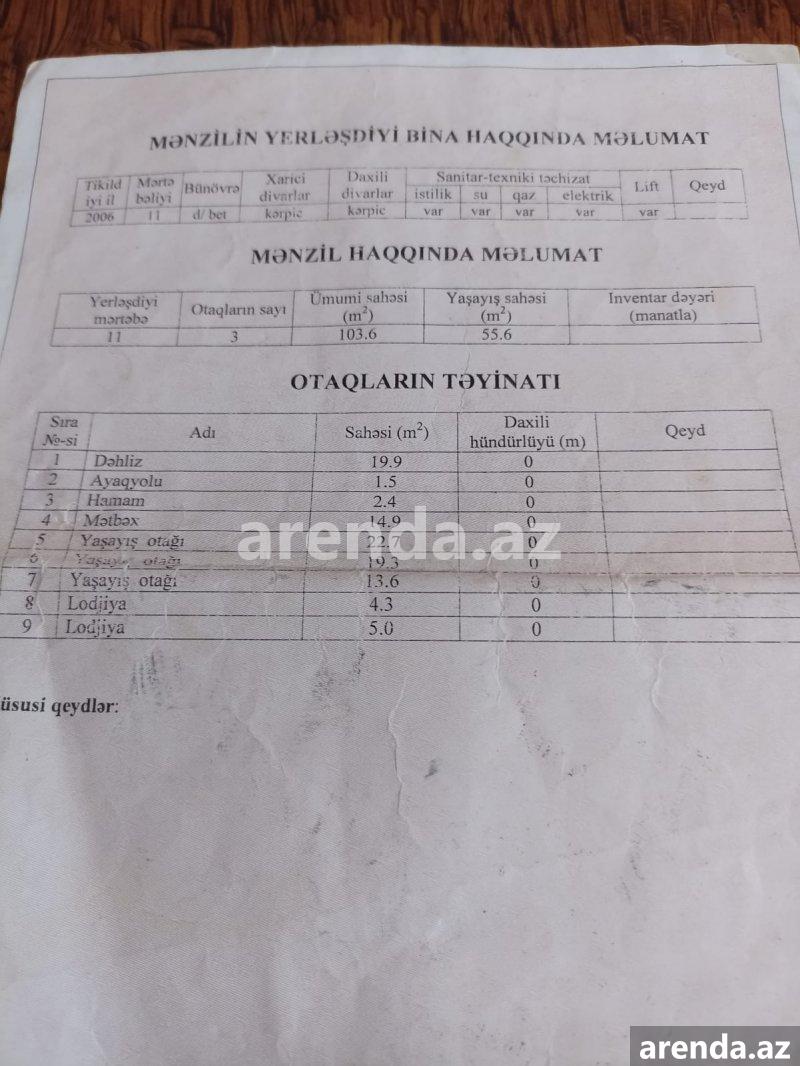 3 otaqlı 102 m² 11/17 mərtəbə -