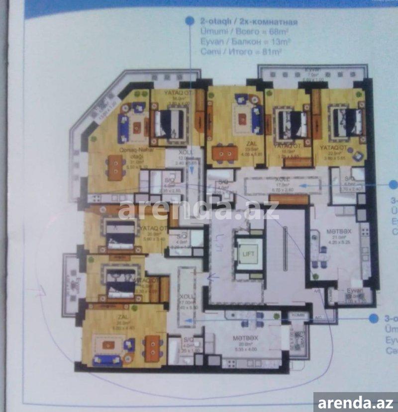4 otaqlı 210 m² 2/16 mərtəbə -