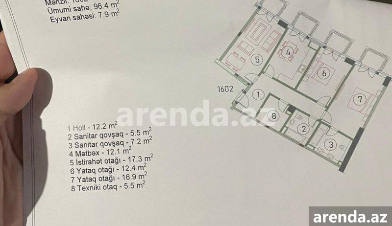 4 otaqlı 170 m² 8/16 mərtəbə -