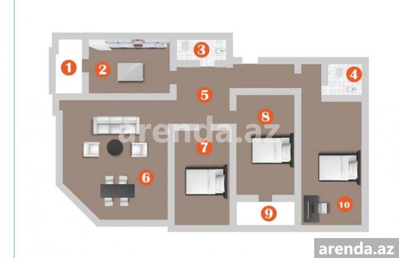 4 otaqlı 180 m² 8/15 mərtəbə -