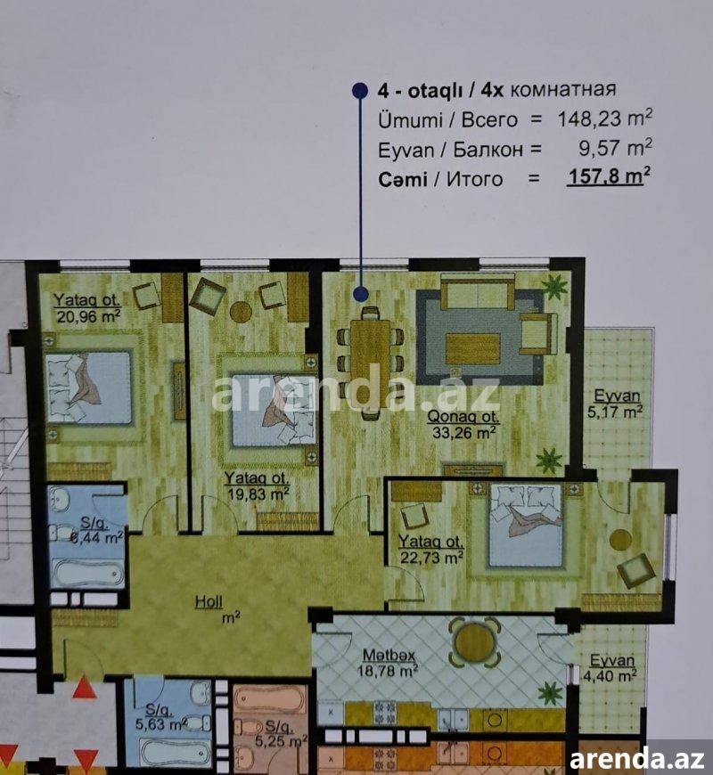 4 otaqlı 147 m² 7/8 mərtəbə -