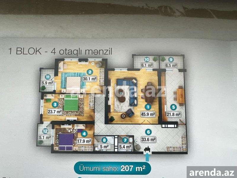 3 otaqlı 135 m² 4/16 mərtəbə -