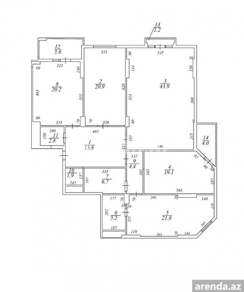 3 otaqlı 150 m² 11/14 mərtəbə -
