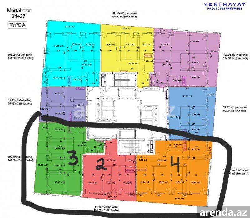 3 otaqlı 93 m² 9/9 mərtəbə -