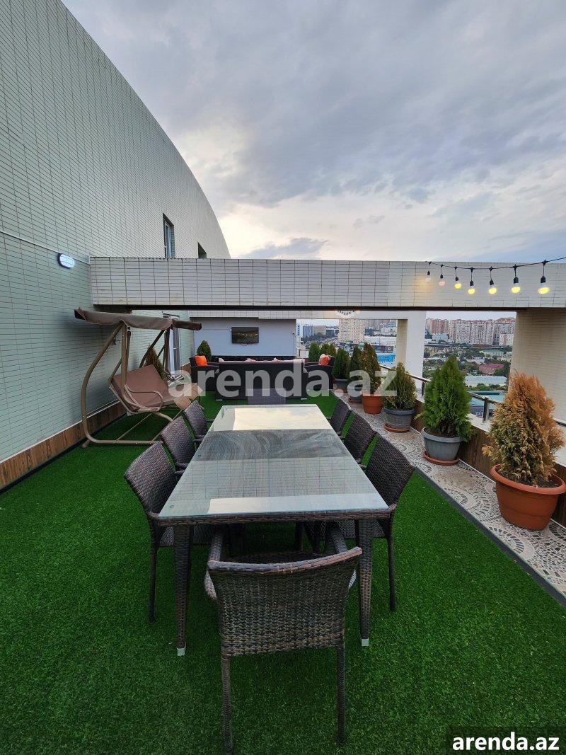 TƏCİLİ YENİ TİKİLİDƏ SARAY KİMİ MƏNZİL ƏŞYALI!!! - Nəsimi rayonu, Tbilisi pr. - Qafqaz Hotel yanı, Neptun marketin üstü - Sahəsi: 360 m² - Otaq sayı: 5 - Mərtəbə: 15 və 16-cı (dubleks) - Lift 14ə qədər qalxır - Super təmirli - Sənəd: Kupçalı -Qeyd: 60 m² sağda, 60 m² solda terras + 240 m² yaşayayış sahəsidir. Geniş, işıqlı gün düşən skvaznoy (yelçəkən) mənzildir. Şəxsi yaşayış üçün bahalı materiallarla zövqlə keyfiyyətli təmir olunub, təmiri yenidir, az yaşayış olub. Döşəmə bahalı laminatdır, dartma tavan. Mənzilin bütün otaqları isti döşəmədir. Mənzildə isitmə və soyutma sistemi bina tərəfindən fan Coil sistemi ilə təşkil olunub. Şəkillər mənzilə aiddir. Ofis haqqı 1%