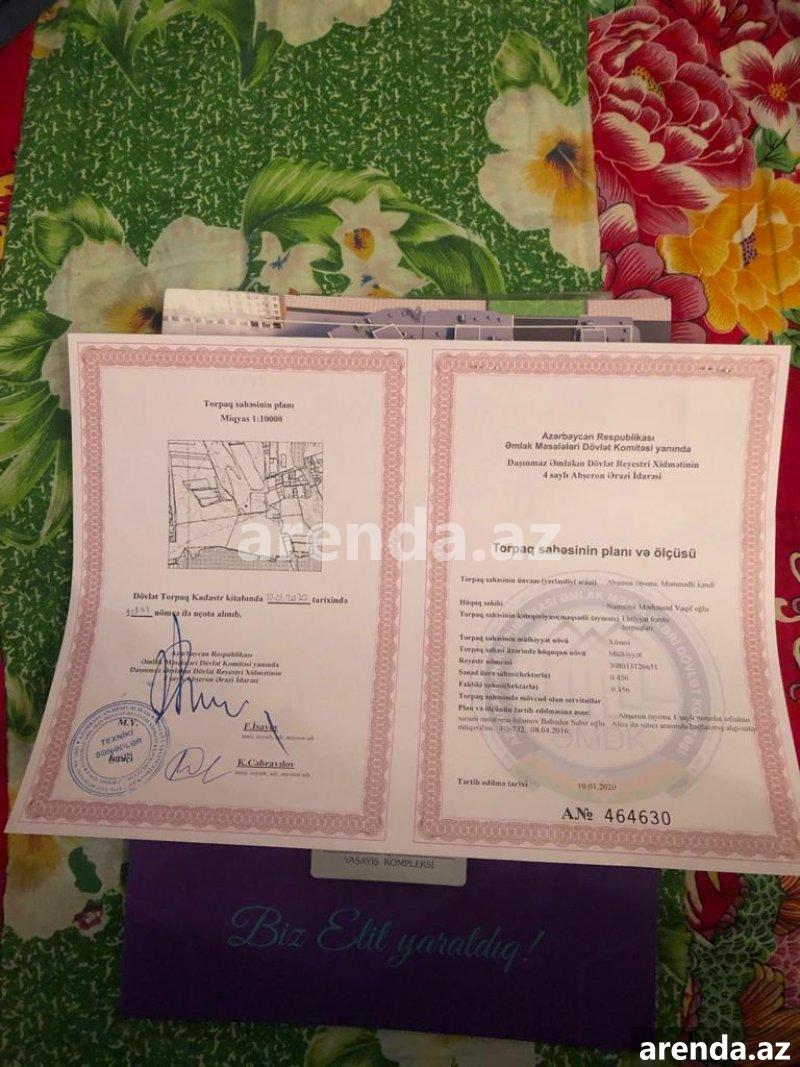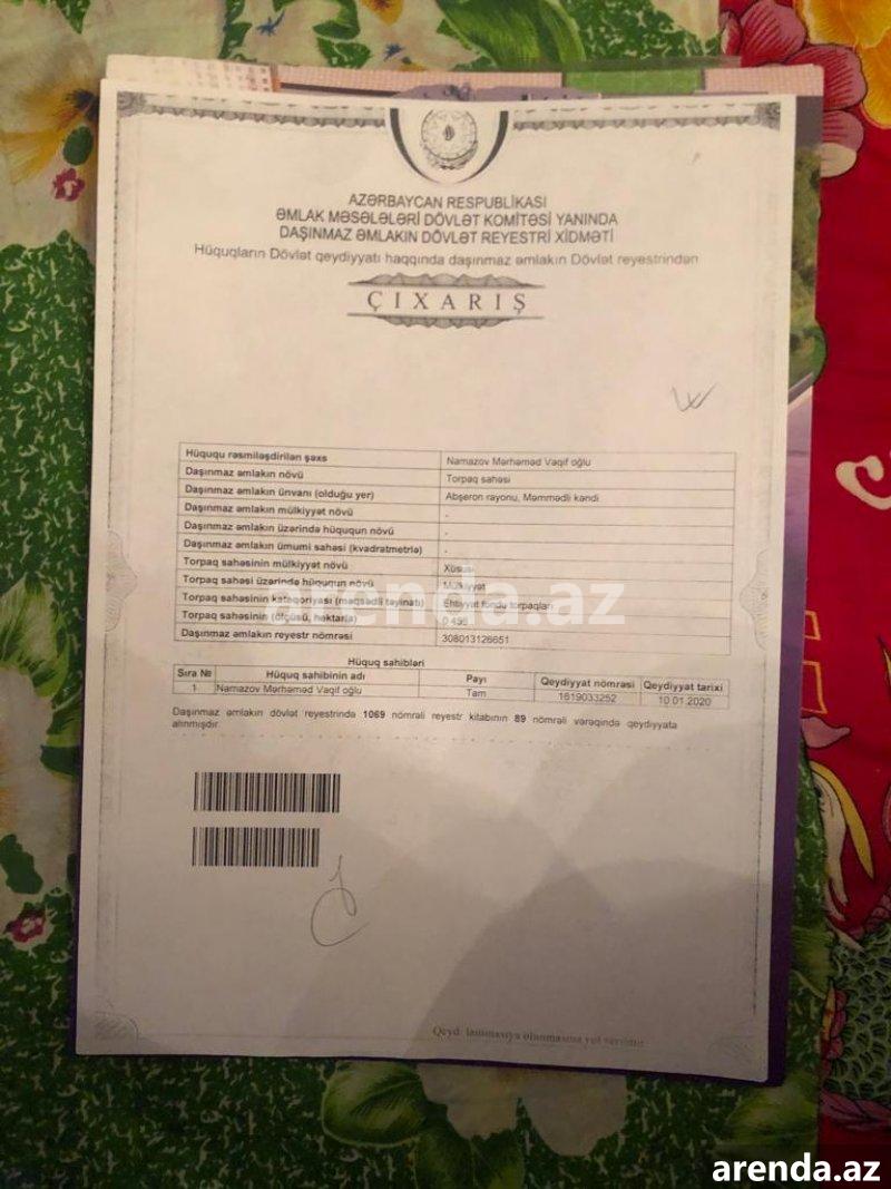 Abşeron rayonu, Məmmədli kəndi, əsas yoldan 300 metr içəridə 45,6 sot torpaq sahəsi satılır. Mülkiyyət növü – xüsusi, torpaq sahəsi üzərində hüququn növü – mülkiyyət, torpaq sahəsinin təyinatı – ehtiyyat fondu torpaqlar. Torpaq sahəsi 4 hissəyə bölünüb satıla bilər. Kommunal xətlər torpaq sahəsinin yaxınlığından keçir. Təcili satıldığına görə qiyməti bazar dəyərindən aşağı qoyulub. 1 sot 2500 AZN.