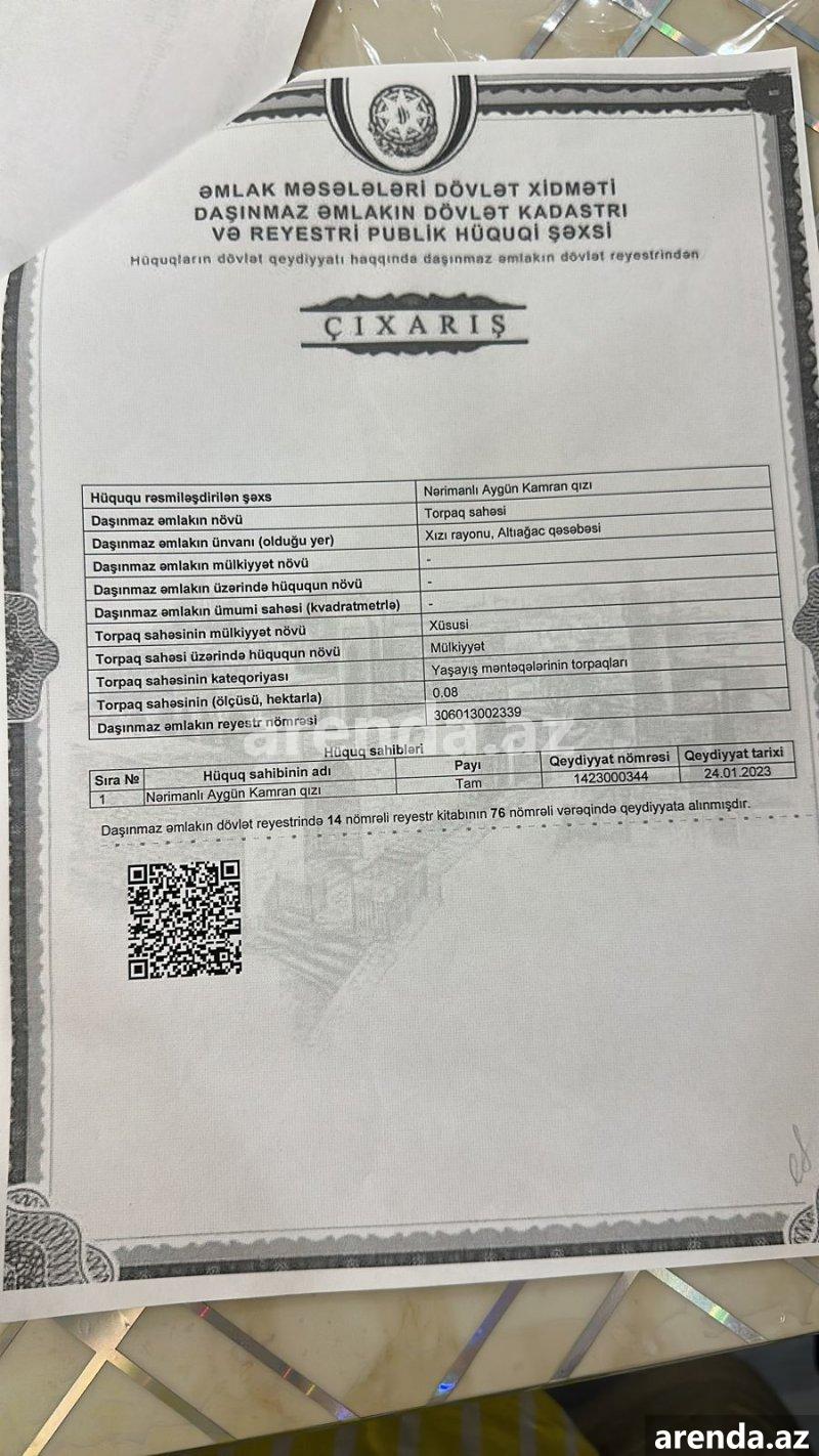 240 000Dünən, 17:15Satılır Torpaq